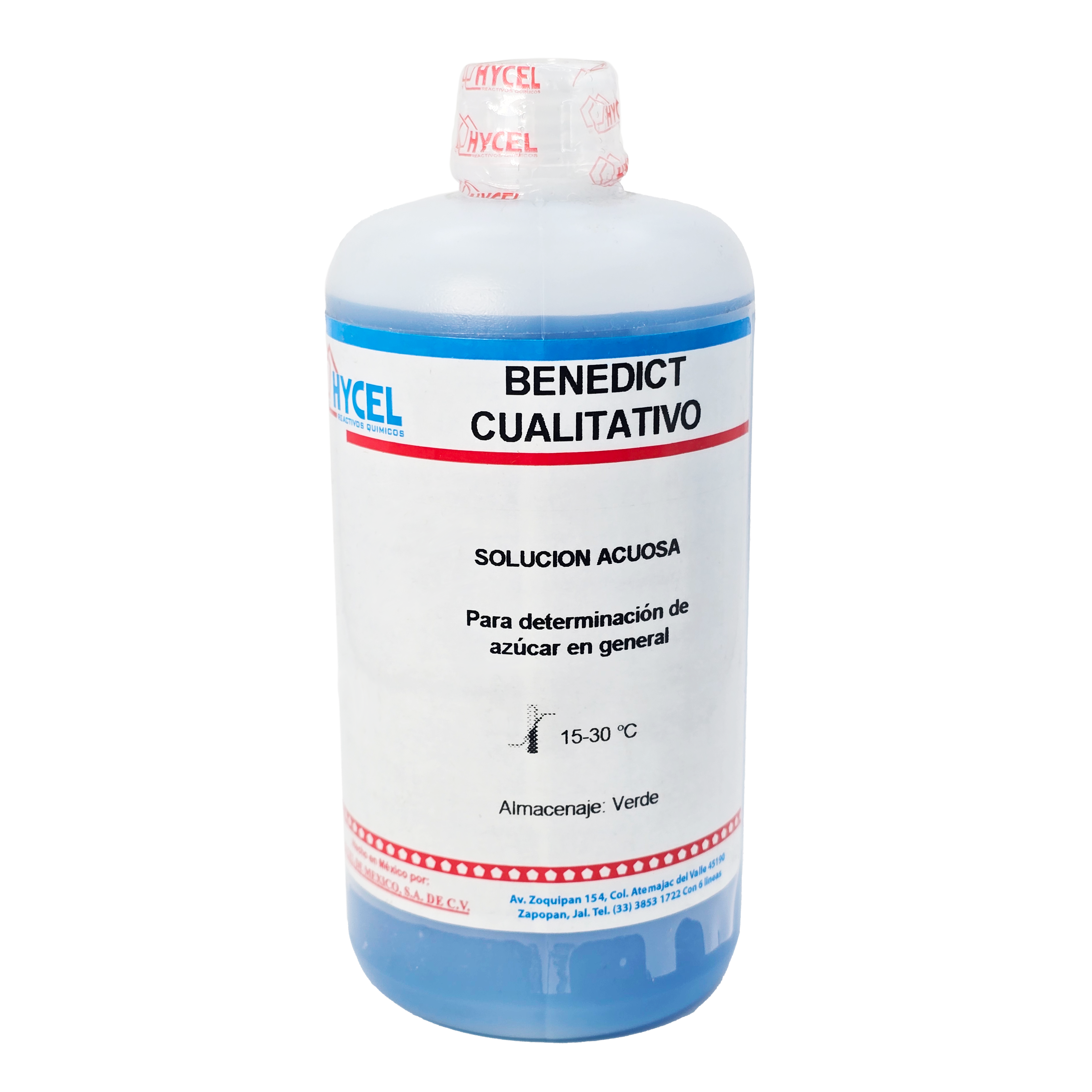 Reactivo Benedict Cualitativo - Hycel (REF 2416) Características Tipo: Reactivo cualitativo para detección de azúcares reductores. Uso: Identificación de azúcares como glucosa y fructosa en muestras biológicas. Mecanismo: Provoca un...